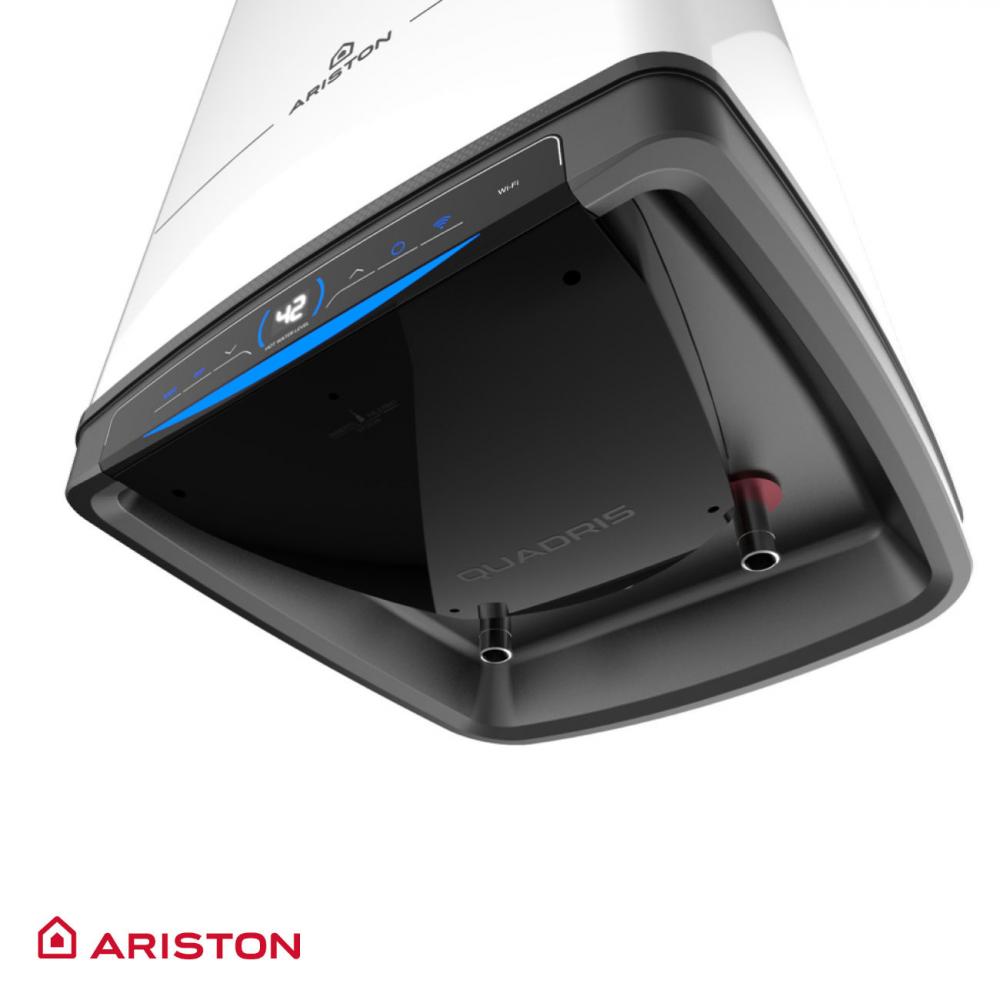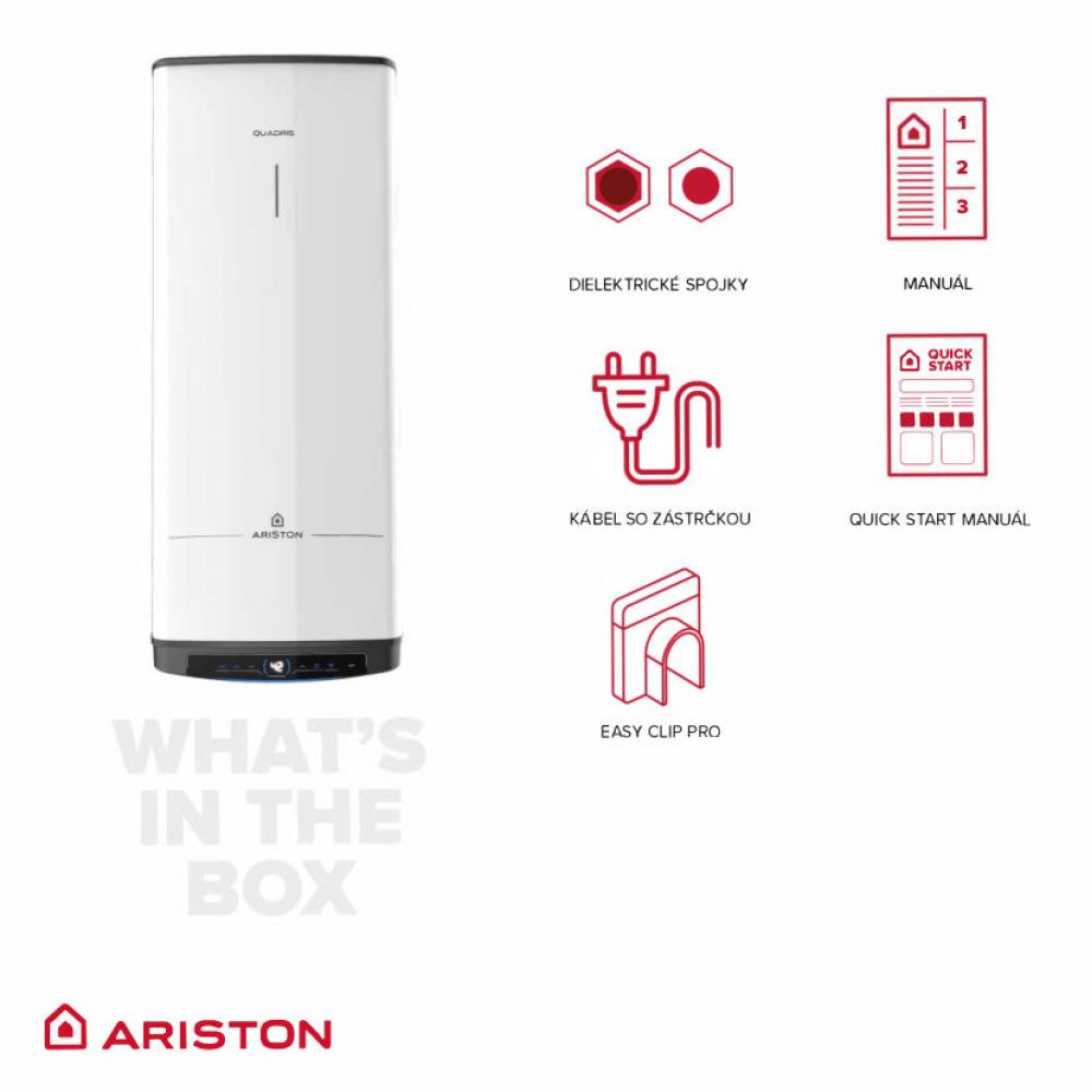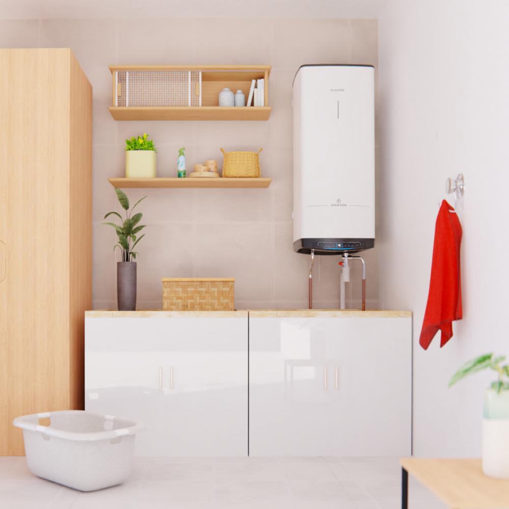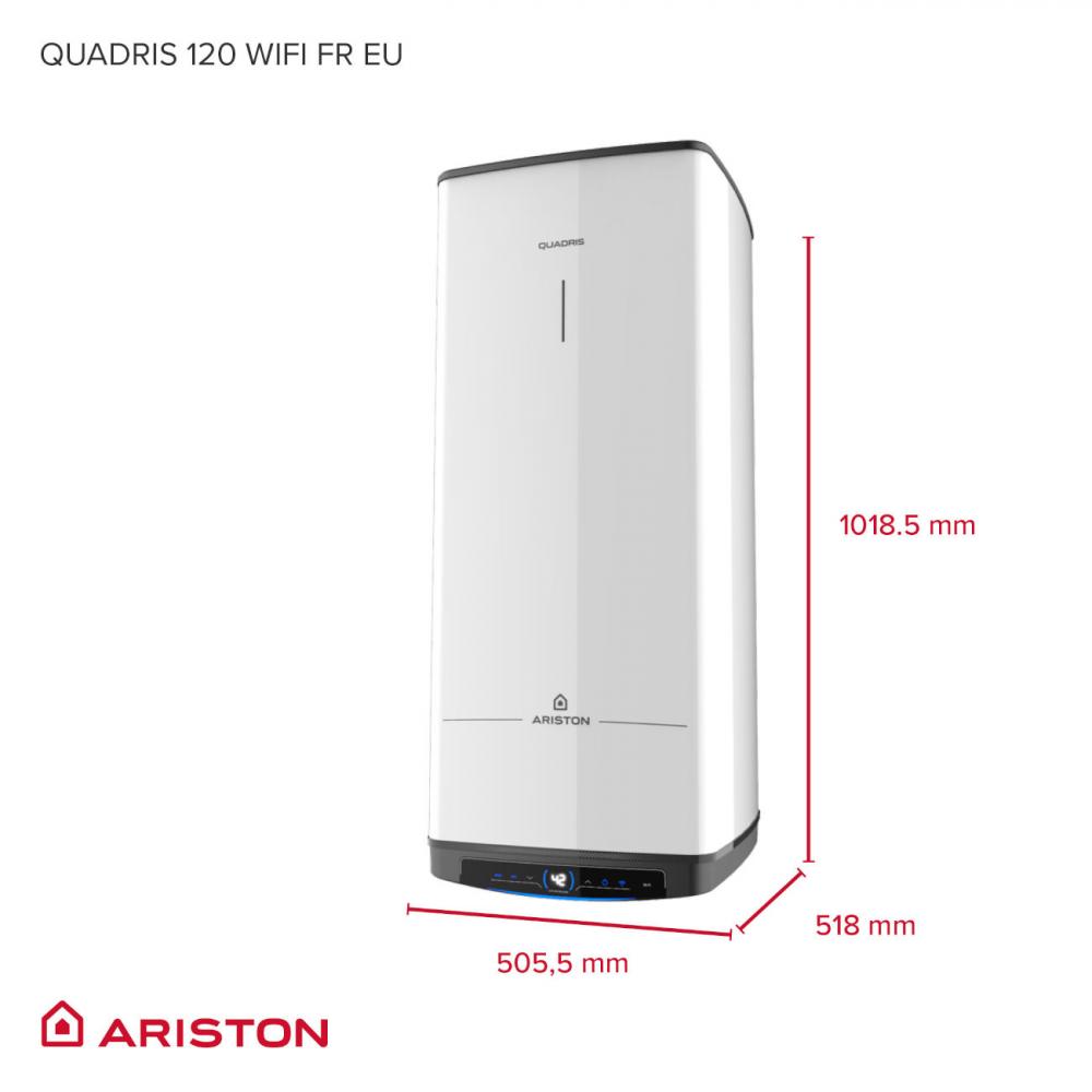 Veľký elektrický ohrievač vody s objemom 120 l. Kompaktný, štvorcový, na vertikálnu montáž. Plánovanie a ovládanie ohrevu prostredníctvom WiFi.