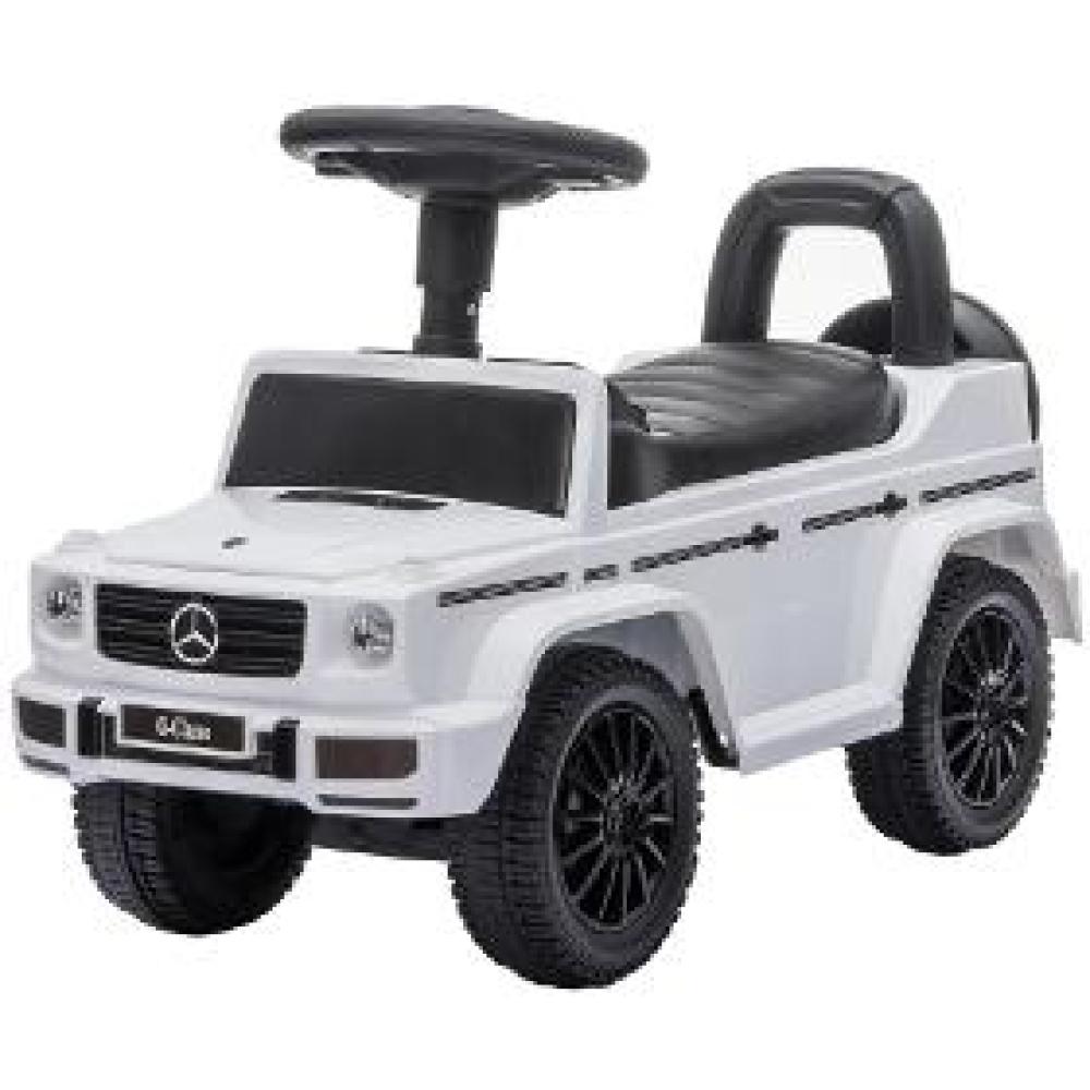 Odrážadlo BUDDY TOYS Mercedes-Benz G350d Úložný priestor pod sedadlom Zvuky a melódie na volante Nosnosť: 25 kg Vhodné pre deti od 2 rokov Farba: Biela Batérie: 2x AA batérie Nie sú súčasťou dodávky Rozmery: 70 x 29 x 41 cm Sedadlo je vo výške 26 cm