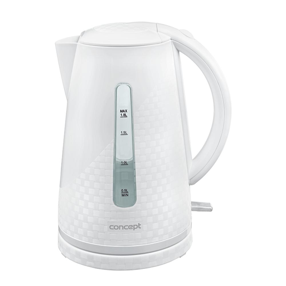 Plastová rýchlovarná kanvica Concept RK2320 White s objemom 1,8 l s 3D potlačou.