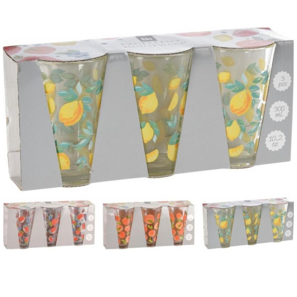 Pohár na vodu 300ml sada 3ks mix ovocie sklo