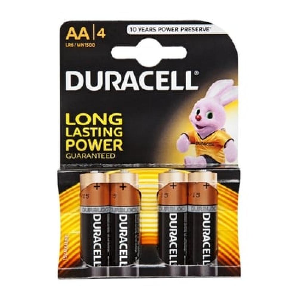 tandardné tužkové batérie Duracell Basic MN1500 AA BL4 typu LR6 určené predovšetkým pre denne používané spotrebiče a zariadenia. Skladovateľnosť batérie je až 10 rokov.