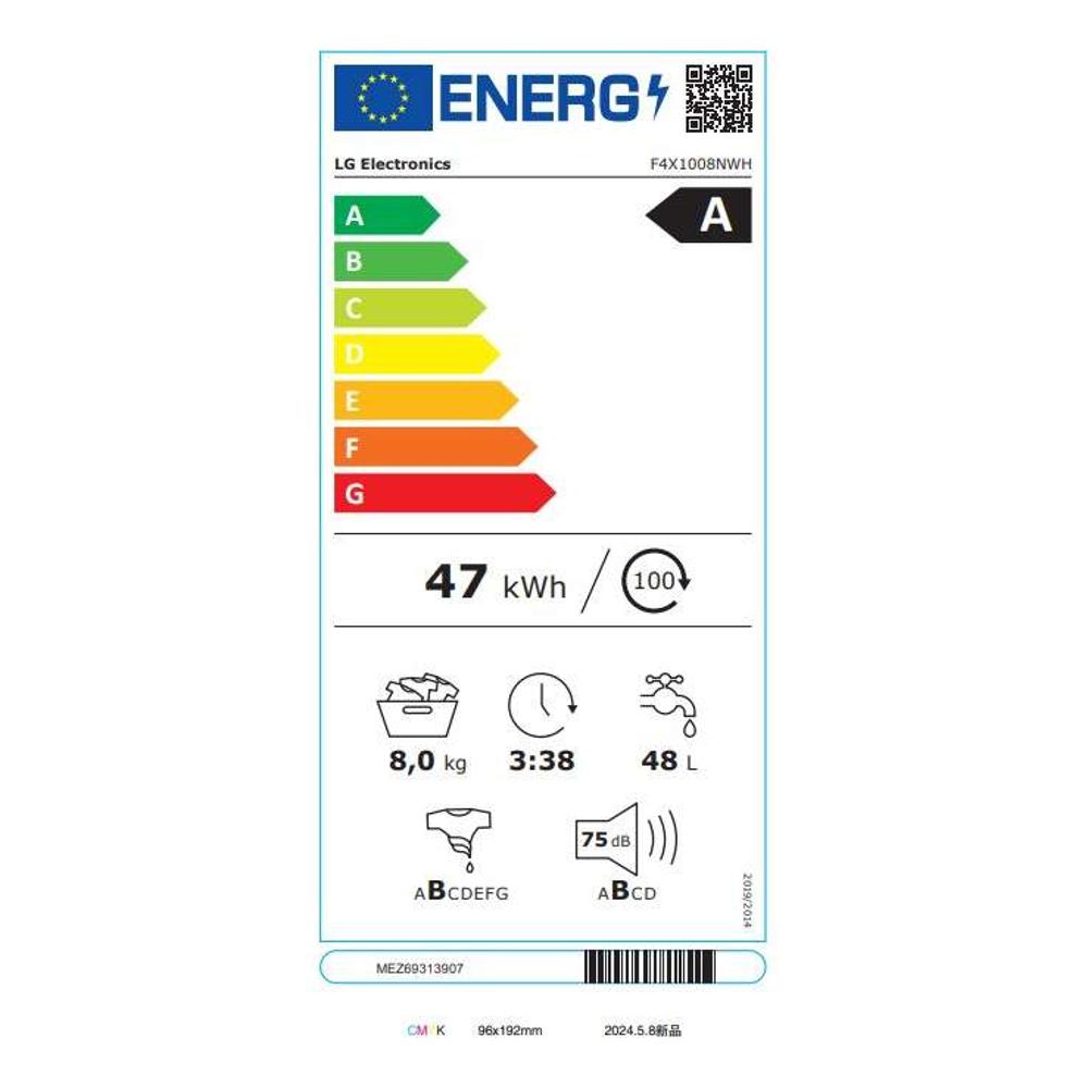 F4X1008NWH spredu plnená práčka LG