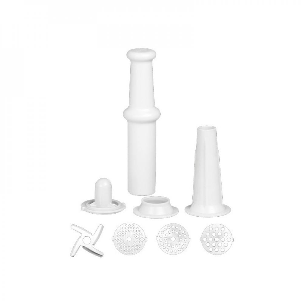 mlýnek na maso 3 mlecí destičky - jemné 3 mm , standartní 5 mm, hrubé 7 mm nástavec na strouhání a krájení zeleniny součástí výrobku nástavec na plnění klobás součástí výrobku