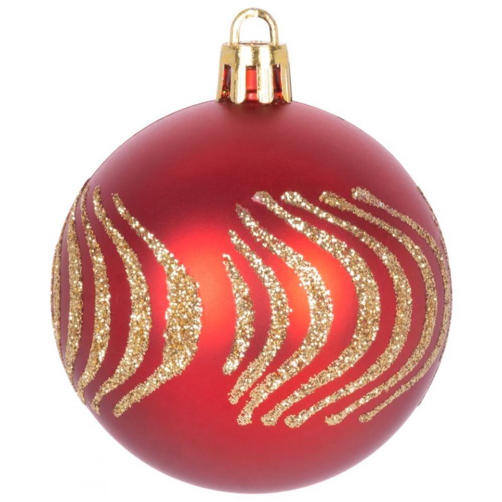 Súprava ozdôb na stromček slúži na slávnostné ozdobenie vianočného stromčeka. Pozostáva z 20 ks vianočných gulí s priemerom 6 cm a špica s rozmerom 28x6 cm. Farba ozdôb je červená. Sú vyrobené z plastu.