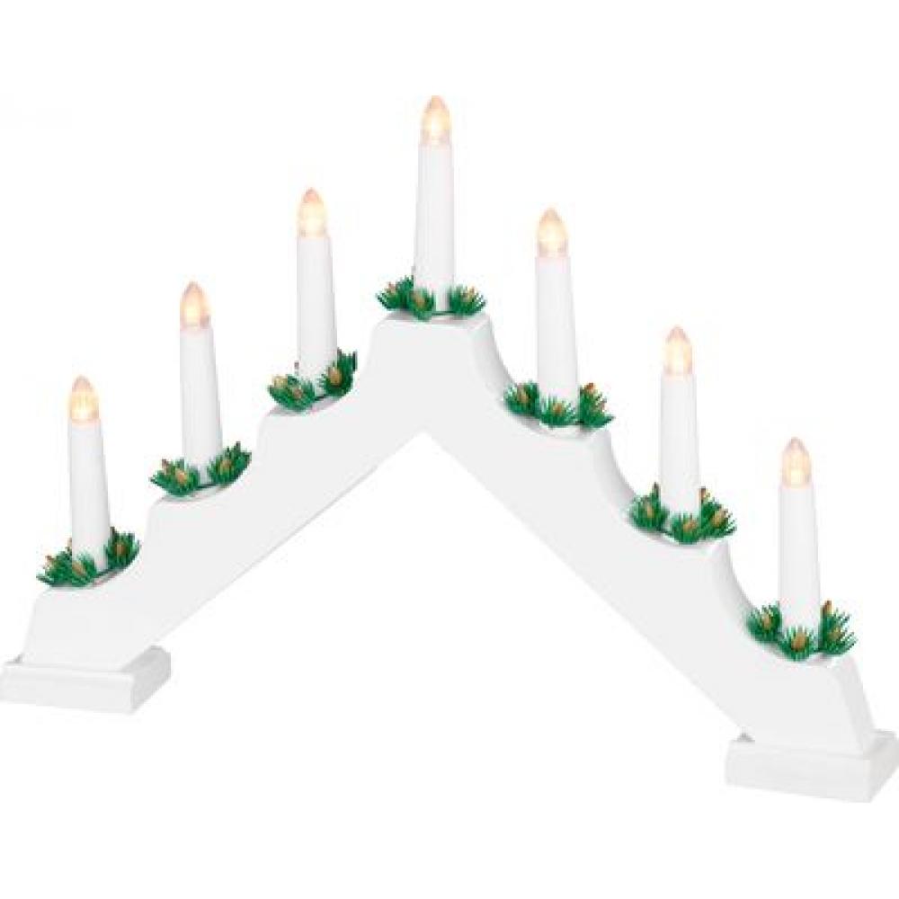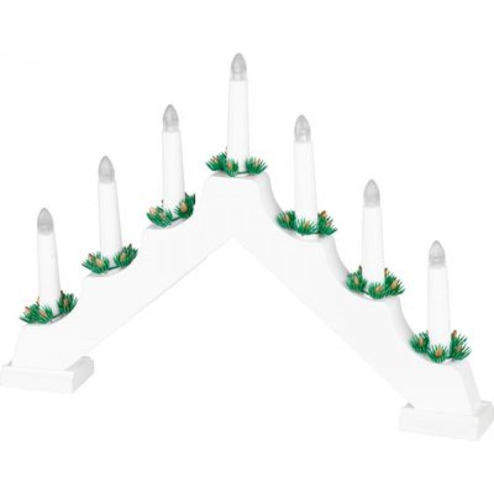Svietnik MagicHome Vianoce, 7x LED teplá biela, biely, 2xAA, interiér, 39x4,5x29 cm