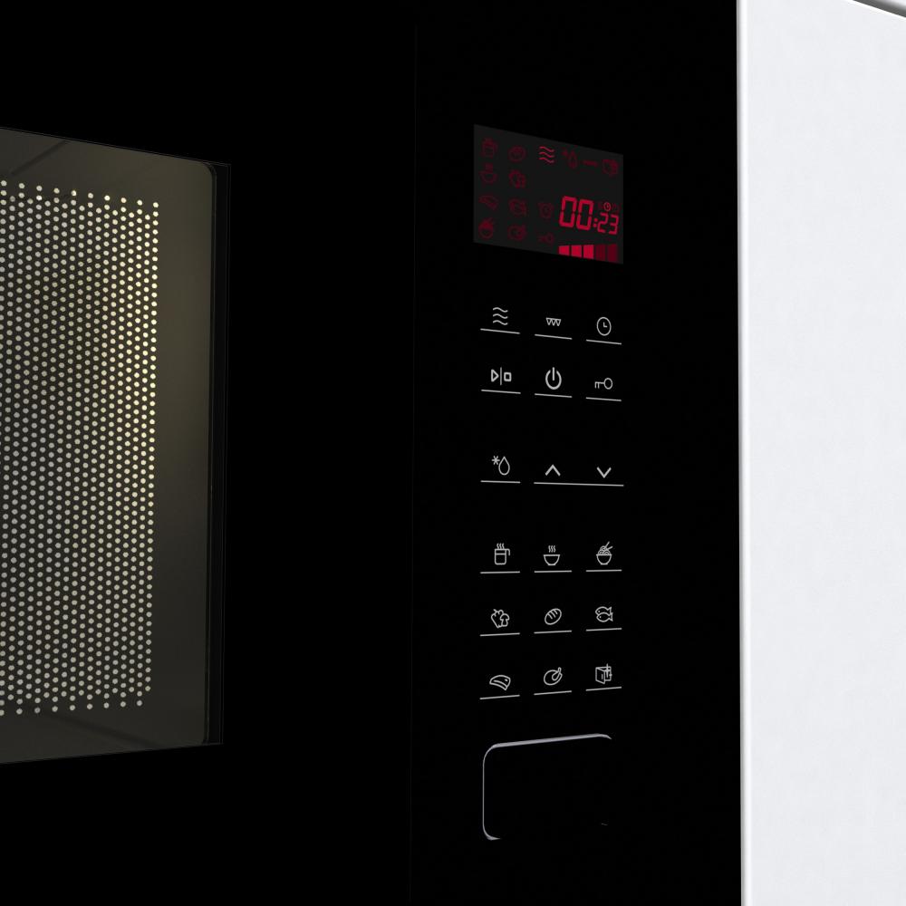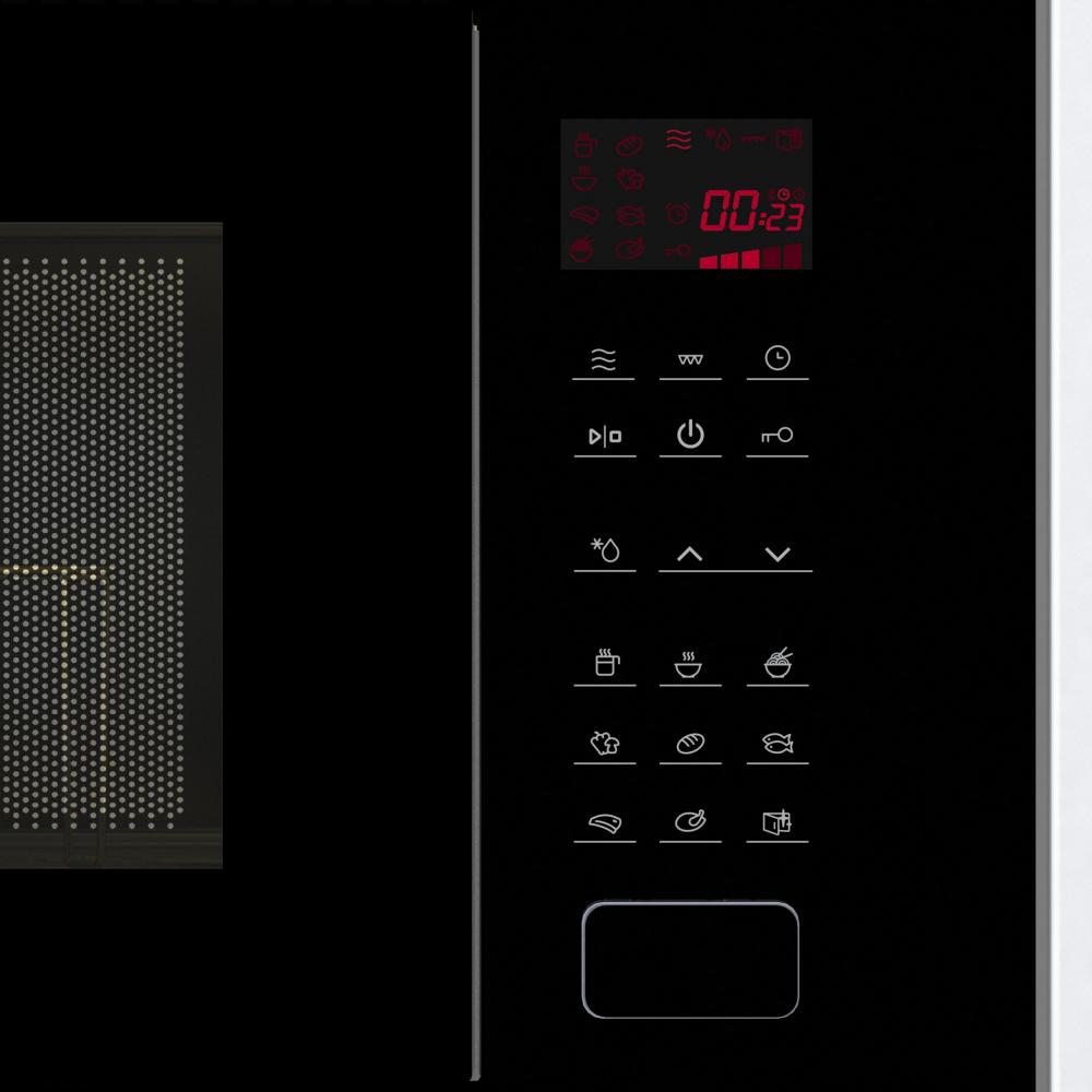 Vstavaná mikrovlnná rúra / Objem 25 l / Dotykové ovládanie / Výkon 900 / 1200 W / AUTO menu / Možnosť kombinovaného ohrevu / Čierne sklo