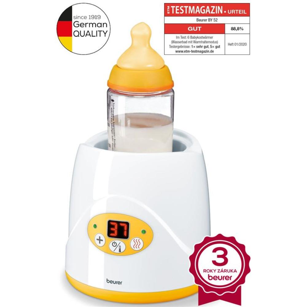 Ohrievač detských fliaš s označením Beurer BY52 ponúka 2 funkcie v jednom. Nielenže ohrieva fľašu na požadovanú teplotu, ale navyše ju aj udržiava teplú. Má tiež digitálny displej, na ktorom sa požadovaná teplota zobrazuje. Takže hneď viete, koľko stupňov má tekutina vo fľaši. Charakteristika a technické údaje: 2v1-pokrm ohrieva a zároveň udržiava teplý LED display zobrazuje teplotu pokrmu doba ohrievania 3-18 min možnosť udržiavania teploty 35-85° C vhodný pre väčšinu fliaš a pohárov automatické vypnutie po ohriatí obsah balenia: ohrievač, nádoba na stravu, 3x samolepka zdvihák pre ľahké vyberanie pohára 80WKolekcia starostlivosti o dieťa nemeckého špecialistu Beurer obsahuje starostlivo prispôsobenú škálu produktov, ktoré spĺňajú všetky potreby detí a rodičov: od detských monitorov, klinických teplomerov, detských váh a odsávačiek mlieka až po ohrievače a sterilizátory fliaš. Starostlivosť o dieťa Beurerom, to je len to najlepšie pre našich malých!