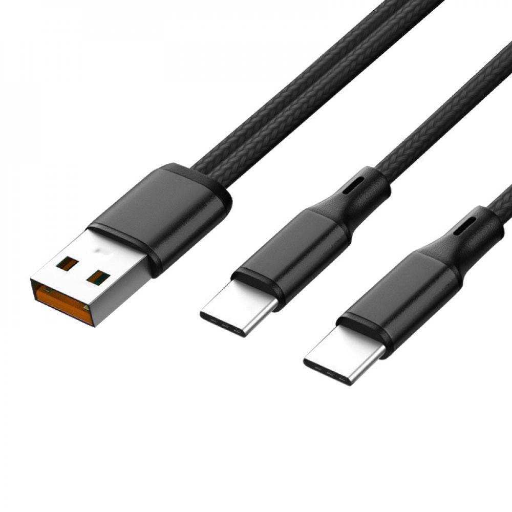 Sturdo textilný nab. kábel 2in1, 1,2m USB na 2x Type-C (QC 5A+2A), čierny